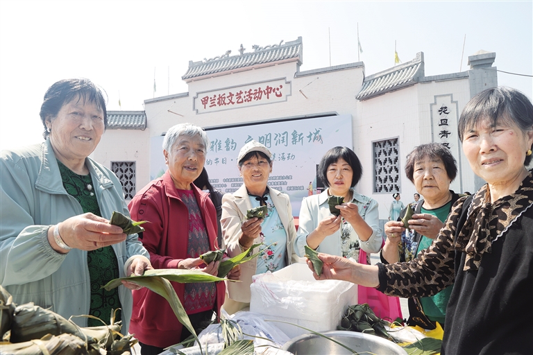 5月27日,呼和浩特市新城区保合少镇甲兰板村居民一起包粽子,共迎端午佳节。这几天,呼和浩特市各地纷纷举办各种活动,让居民共同体验端午民俗,领悟中华优秀传统文化精髓。本报记者 贾奕村 摄