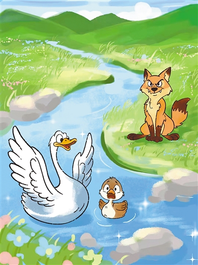白天鹅愤怒地转向狐狸:“草原上,谁不知道你狐狸的嘴脸?你的嘴巴再甜,也藏不住尖牙利齿,你的尾巴再粗大,也遮盖不住腥臊恶臭的味道,只要我叫几声,鹰就会往这里看,你觉得鹰会不会对你感兴趣呢?”