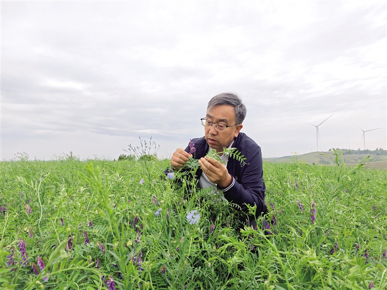 当时,位于武川县上秃亥乡新河村的试验站远离城镇、风沙大,条件异常艰苦。为了改变当地旱坡地土壤贫瘠现状,赵沛义从控制水土流失开始着手研究,常常是一年连续200多天走乡间、蹲农田。无论刮风下雨总能看见他忙碌的身影,有时饿了顾不上做饭,就靠方便面、面包、咸菜充饥,渴了就喝一碗井拔凉水。为了不耽误科研进度,“非典”时期,他将妻子和刚出生的孩子接到身边,在田间一蹲就是一整天,早出晚归“两头黑”。“决心让旱坡地丰产,始终是支撑我坚守农田一线的精神支柱。”赵沛义说。