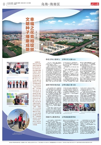 当清晨的第一缕阳光掠过乌海市海南区巴音陶亥镇新绘的文明彩绘墙、照进黄河西行客栈学雷锋志愿服务基地时,海南区用文明“拔节生长”的声音回应着“文明的高度该如何丈量”的时代之问。在这里,精神文明建设的标尺不仅镌刻在熠熠生辉的奖杯上,更深深印在人民群众绽放的笑靥中。行走在海南区的大街小巷,“拔节声”此起彼伏:那是街角口袋公园孩童追逐嬉戏的脆响,是千家万户窗棂间溢出的书香,是助人为乐、见义勇为、诚实守信、敬业奉献、孝老爱亲,星河灿烂的身边好人群像……海南区用久久为功的韧劲,将文明的种子播撒成参天绿荫,让广大城乡居民既是浇灌文明之树的园丁,又是栖息其间的百灵,在年轮与拔节的交响中,谱写出“润物无声处,枝叶总关情”的文明诗篇。