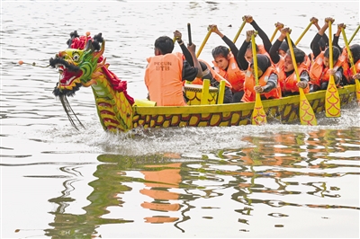 5月31日,在印度尼西亚唐格朗西沙达内河上,人们参加赛龙舟活动。当日是端午节,印度尼西亚华人以多种方式纪念这一节日。新华社发