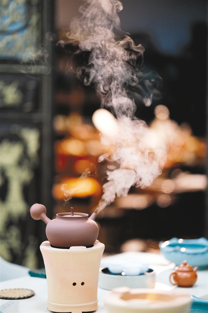 红泥小火炉,茶香氤氲,浅斟慢饮,身心放松。