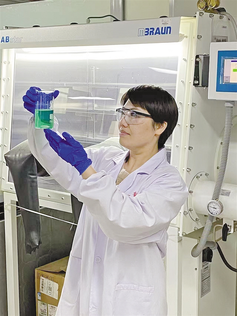内蒙古大学化工学院教授王蕾在实验室开展光电催化制氢研究。