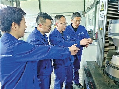 包钢股份技术中心科研团队就出口钢轨物理性能满足美标检验要求进行研讨分析。