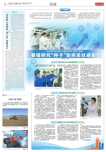近年来,内蒙古深入贯彻落实党中央关于加强基础研究的要求,坚持“四个面向”,深化基础研究体制机制改革,持续加大自然科学基金投入力度,完善人才资助类型,健全多元投入机制,让基础研究的“种子”在充足养分下茁壮成长。
