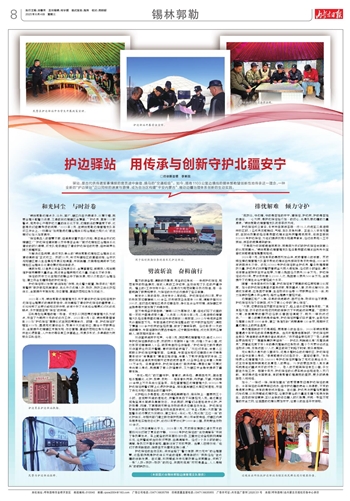 “筑防线,守边境,守的是百姓的安宁;建驿站,护边民,护的是百姓的信任。一心为民,是护边驿站始终如一的初心,也是扎根边疆的力量源泉。”锡林郭勒边境管理支队政委李彦杰说。