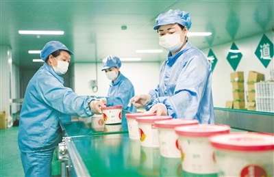 6月4日,在“陕坝味道”食品产业园,内蒙古燕英荞华食品有限公司工作人员正在生产燕麦粗粮方便食品。近年来,杭锦后旗打造“陕坝味道”区域公用品牌,建设“陕坝味道”食品产业园,已入驻旭一乳业、御膳春酒业、燕英荞华等9家企业。截至目前,“陕坝味道”区域公用品牌已累计授权42家食品经营单位、421个产品。本报记者 孟和朝鲁 摄