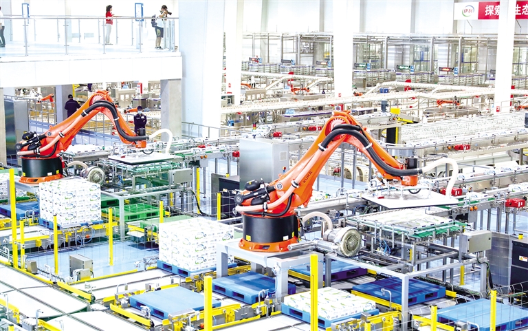 目前,国家商贸服务型物流枢纽、国家级先进制造业和现代服务业试点企业、国家乳制品产业计量测试中心等14个国家级项目已落地伊利健康谷;全球产能领先、技术装备一流、自动化及数字化程度较高的液态奶全球智造标杆基地,年产能6万吨的婴配粉生产基地,年产20万吨奶酪制品研发生产基地以及数智化程度全球领先的敕勒川生态智慧牧场均已在伊利健康谷建成投产,成为行业标杆基地,彰显中国制造实力。