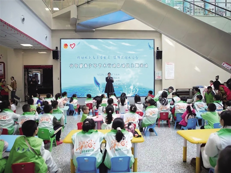 清晨的洮儿河畔,朝阳照向粼粼水面,红领巾志愿者王梓涵与同学们蹲在岸边,用试纸轻蘸河水,测量并记录下pH值,认真写入“小河长日记本”。238名青少年巡河志愿者的生态手记,如拼图般勾勒出30公里河岸线从杂草丛生到水清岸绿的蜕变。与此同时,在乌兰浩特市和平第一小学的课堂上,10岁的王雨欣举起画作,稚嫩笔触中“地球喝水”与“关紧龙头”的对比,折射出“小手拉大手”的生动实践——孩子们将节水知识带回家,让一个水龙头的节约化作千万家庭的行动。