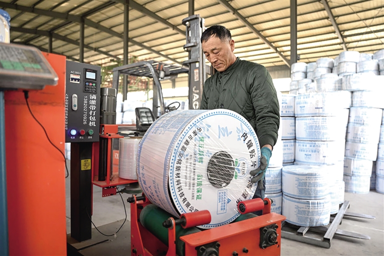 不远处,五道河子村的种植户黄宇正查看玉米长势。他的农田里,浅埋滴灌与水肥一体化技术“双剑合璧”,水、肥通过压力调控精准混合,顺着滴灌带的小孔“细水长流”。“过去浇地累得直不起腰,现在手机一点就能远程操控,省下的时间还能去城里打工。”黄宇感慨地说。
