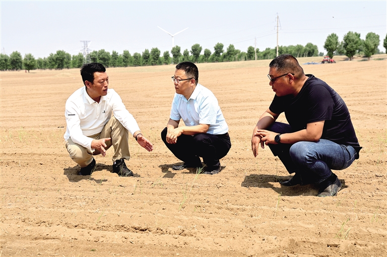 “一棵中科羊草苗可以分蘖18个横走根茎,固沙能力强,而且一次性播种30年不退化。现在应用的育苗移栽技术当年就让羊草达到一条线的效果。这片地明年一定绿油油的,覆盖度能达到90%以上。”正在现场指导移栽的中科院植物研究所中科羊草团队工程师刘辉欣喜地说。