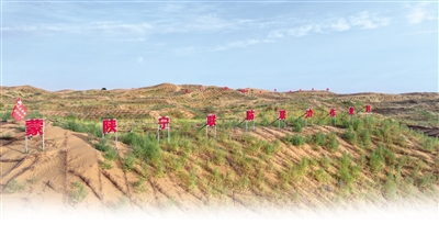 “我们边做沙障边插苗,每人每天能挣大约300元。通过防沙治沙工程,草场改良了,环境绿化了,我们农牧民的收入也增加了。”正在现场作业的村民高志强说。以往这个季节,他会外出打零工,今年参与了本地合作社承包的生态治理工程,还能兼顾家里的牛羊养殖,实现了“家门口”挣钱致富。