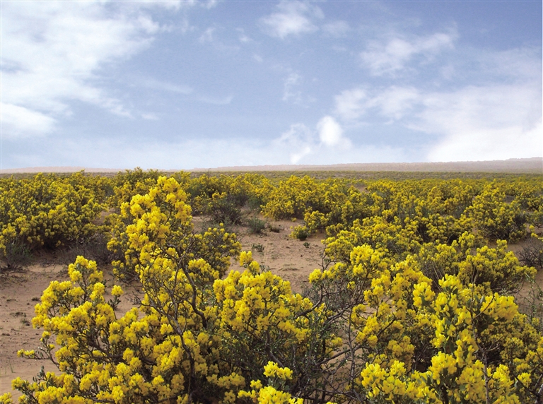 走进位于阿拉善左旗宗别立镇茫来嘎查的百万亩梭梭肉苁蓉基地,登高远望,只见茂密的梭梭林在连绵起伏的沙丘上随风摇曳,盎然植被遮盖住了昔日肆虐的漫漫荒沙,让沙海焕发出勃勃生机。