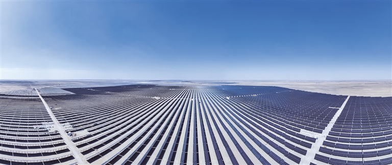 作为一类风能资源丰富区和二类太阳能资源丰富区,鄂托克前旗全年平均日照时数达3000多小时,这为能源大基地建设提供了先天优势。近年来,当地把新能源产业作为绿色低碳转型、培育新支柱产业的关键,不断补齐发展短板,做优发展增量,通过“光伏+治沙”实现了经济效益和生态效益双赢。