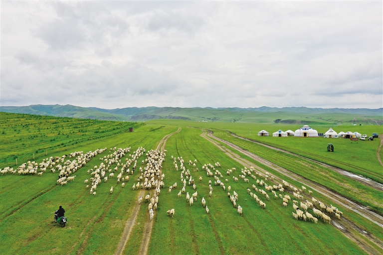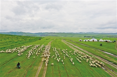 仲夏时节的赤峰市阿鲁科尔沁草原一碧千里,风景如画。6月13日,1200余户牧民,赶着12.8万头(只)牲畜,从冬营地定居点出发,缓慢向夏营地行进,形成巴彦温都尔苏木原生态迁徙的壮美景观。