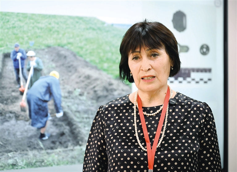 6月3日,哈萨克斯坦伊塞克国家历史文化博物馆馆长古丽米拉接受新华社记者采访。新华社记者 李任滋 摄