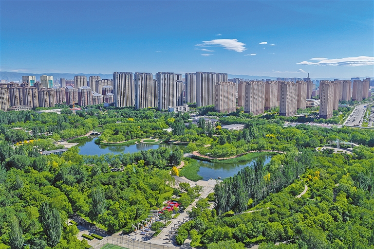 航拍镜头下的呼和浩特市赛罕区锡林公园绿意盎然。近年来,呼和浩特市不断优化山水交融、城园相望的“两屏四带多点”城市生态空间格局,全面推进首府“五宜城市”建设,三绿指标均达国家生态园林城市标准,城市基础绿量逐年稳步提升。各类公园、游园总数达到1009个,跻身“千园之城”行列。本报记者 王磊 摄