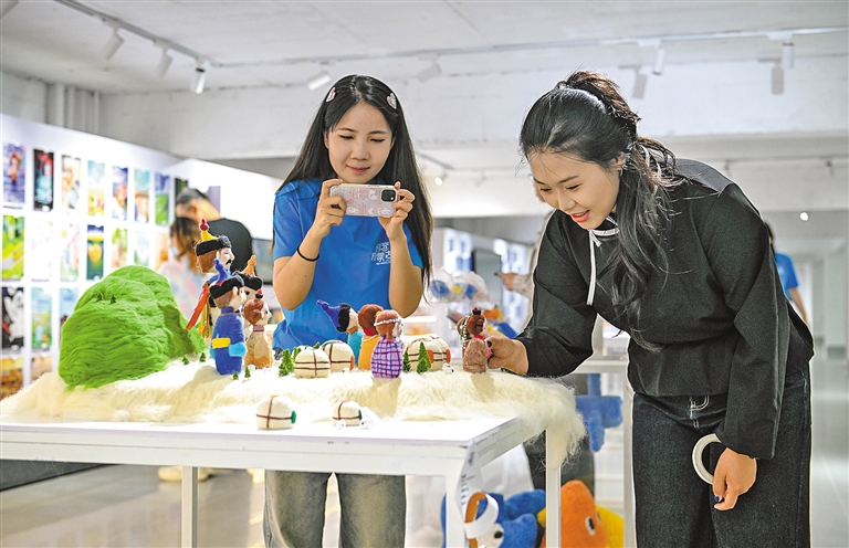 萌萌的文创毛绒公仔,富有巧思的艺术装置……在“创意内蒙古·智创草原——设计赋能呼和浩特”内蒙古师范大学设计学院2025届毕业生设计作品展上,各类创意展品凝结着学子们的心血与智慧,对艺术设计的创新与追求。