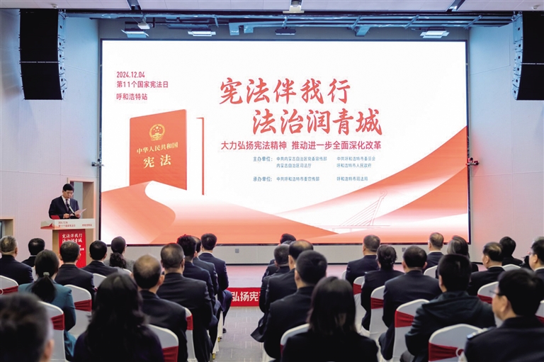 普法,于依法履职时深植。“我宣誓:忠于中华人民共和国宪法……”新任职领导干部正在进行庄严的宪法宣誓。呼和浩特市紧抓“关键少数”,分级分类制定领导干部应知应会党内法规和国家法律清单,严格落实宪法宣誓制度,贯彻“谁执法谁普法”普法责任制,行政机关负责人出庭应诉率持续保持100%。