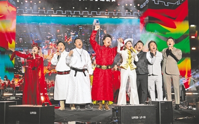 本场演出特别邀请了孟庭苇、民乐大师方锦龙以及齐峰、乌兰图雅、呼斯楞、云飞、傲日其愣、安达组合、额尔古纳乐队、阿木古楞、阿古达木等歌手同台献艺。17组节目各具特色,民乐合奏《北疆欢歌》将马头琴与古筝、琵琶、二胡等曲风融合,展开一场跨越地域与民族的艺术对话;情景表演《黄河千鼓·绸舞山河》,唢呐、演唱、腰鼓、绸舞相结合,演绎了“黄河初醒”到“万流归海”的豪迈,让观众看见黄河的“形”,听见黄河的“魂”,触摸黄河的“脉”;《敖包相会》《父亲的草原母亲的河》《母亲》《我和草原有个约定》等耳熟能详的歌曲让观众们重温经典;500架无人机在空中进行表演,■下转第2版 ■上接第1版 “歌游内蒙古”“蒙古马”……每变幻一次图形,都引来现场观众阵阵欢呼;黄河与长城交汇的舞美设计、视频光影的视觉展现,将内蒙古的自然景观、人文风情一一呈现,让观众在领略北疆文化魅力的同时,激发出对这片土地的热爱与向往。