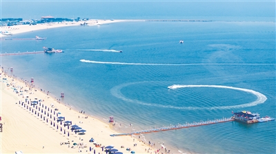 这是6月21日拍摄的天津东疆湾沙滩景区一景(无人机照片)。近年来,天津市滨海新区依托临海的区位优势和深厚的海洋文化底蕴,通过不断改善生态环境、优化公园布局等,打造了多个可临海观海的景点,渤海湾畔的文旅新场景接连上新。国家海洋博物馆、东疆湾沙滩景区、亲海公园、露营基地等海岸线上的新风光串珠成链,成为市民游客休闲的好去处和文旅融合的新地标。