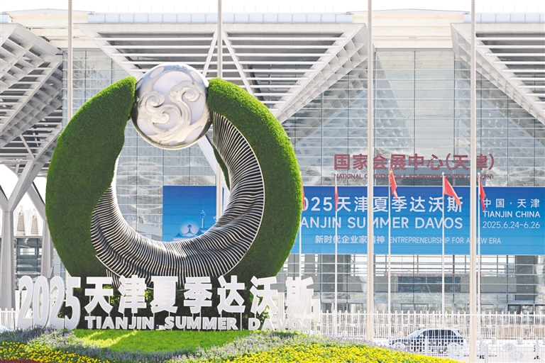 这是6月22日拍摄的国家会展中心(天津)。6月24日至26日,世界经济论坛第十六届新领军者年会(2025夏季达沃斯论坛)将在国家会展中心(天津)举行,来自90多个国家和地区的约1800名嘉宾参会。目前,论坛的各项筹备工作已经就绪。 新华社记者 李然 摄