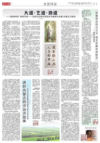 由国务院参事室、中央文史研究馆主办,内蒙古自治区文史研究馆和内蒙古美术馆承办的《国魂铸梦 翰墨华章——全国文史研究馆馆员书画新作巡展(内蒙古)》,于6月17日上午在内蒙古美术馆开幕。
