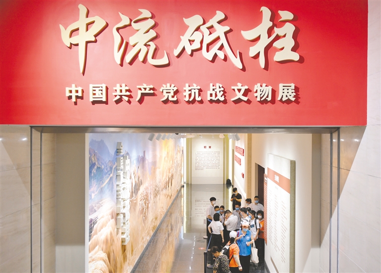 2021年7月7日,观众在北京中国人民抗日战争纪念馆参观“中流砥柱——中国共产党抗战文物专题展”。 新华社记者 张晨霖 摄
