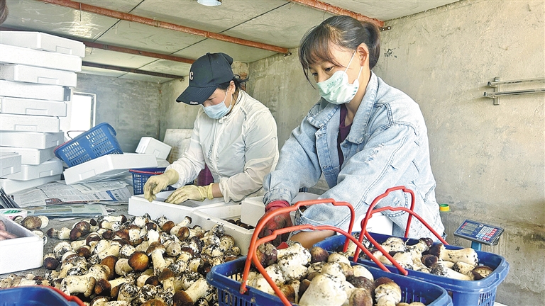 “这边的气候非常好,昼夜温差比较大,出来的蘑菇口感、品相上很受北上广深各大市场的喜爱,所以我们合作了好多年,每年出菇我都到这里收购。”上海富超农业专业合作社理事长刘富超说。
