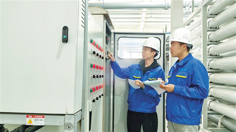 万水泉水质净化厂厂长关辉告诉记者,污水进场后,伴随粗、中、细格栅不停地运转,如“清道夫”般拦截了污水中的固体杂质。紧接着,经过沉淀池、生物池、净水间、磁介质高效沉淀池……多个环节“精雕细琢”后,污水逐渐褪去污浊,最终成为可用于工业生产、绿化灌溉、生态补水的再生水。