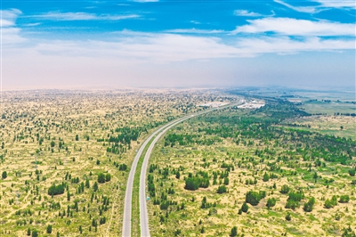 库布其沙漠是我国第七大沙漠,曾因风沙肆虐、寸草不生而被称为“死亡之海”。杭锦旗境内库布其沙漠面积约1480万亩,约占全旗国土面积的52.2%。上世纪五六十年代,杭锦旗在库布其沙漠北缘建立三个国营治沙站,经过几代人努力,建成19.95万亩锁边林带,有效阻止沙漠北扩。