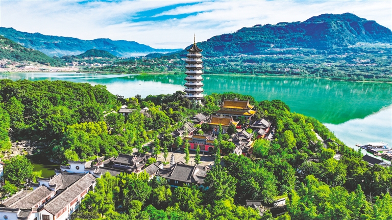 这是7月3日拍摄的重庆开州城区景象(无人机照片)。重庆市开州区地处三峡库区腹地。三峡工程建成后,经国家批准,在小江开州城区段新建生态水位调节坝,形成了总库容约8000万立方米的城市内湖——汉丰湖。 近年来,开州区围绕汉丰湖一湖碧水,探索城市内湖综合治理模式,建立水环境修复机制、水生态保护机制和水资源利用机制,将环湖流域划分为滨湖城市人城景融合区、水源涵养区、土壤保持区、生态修复治理区、湿地保护区5个生态控制单元,筑牢湖周生态屏障、稳固湿地生态系统,形成极具魅力的“亲水”休闲水岸,呈现出“湖在城中、城在山中、人在山水中”的和谐画卷,有效改善人居环境、提升城市品质。 新华社记者 王全超 摄