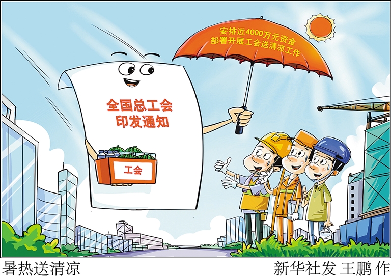 当前,全国各地已陆续进入高温季节。为切实维护广大职工健康权益,降低高温作业和高温天气作业对劳动者身体健康的影响,全国总工会近日印发通知,部署开展工会送清凉活动。新华社发 王鹏 作