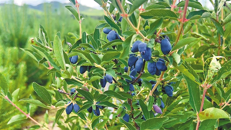 “我之前在网上买过蓝靛果,了解到它的营养价值非常高。如今当地新建了蓝靛果采摘园,我们便来这里采摘,回家后打算给孩子和老人酿些酒,或者做些食品。”游客赵红艳说。