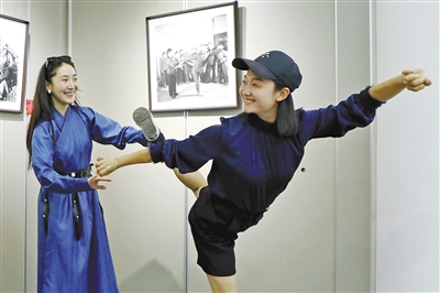 乌兰牧骑,这支草原上的“文艺轻骑兵”,寒来暑往70多年,坚持为群众送去欢乐和文明,从“红色嫩芽”到“唱响中国”,这面全国文艺界的旗帜始终高高飘扬。展览收录了乌兰牧骑多幅走基层、到人民中间去的图片。7月11日,内蒙古自治区直属乌兰牧骑近20名队员走进展厅,青年队员们即兴模仿起老照片里前辈们的舞蹈动作,如同接过穿越时空的接力棒。“老照片不仅是对往昔的深情回眸,更是乌兰牧骑传统薪火相传的生动课堂。”直属乌兰牧骑舞蹈部部长晓雷跟年轻队员们说。