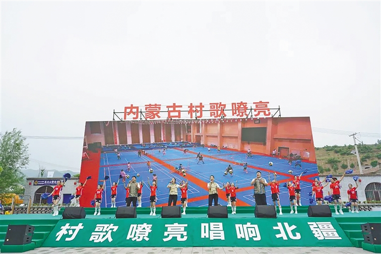 就在今年“村歌嘹亮”大擂台举办前的一个月,“大地流彩”——内蒙古自治区首届和美乡村农牧民气排球赛,在鄂托克前旗马兰花广场启幕。来自区内外77支参赛队伍喜庆相聚,点燃起北疆夏日的激情。开幕式上,歌曲《快乐村排》瞬间掀起气氛高潮,直播观看人数达到78.7万人次。“到鄂托克前旗,吃牛排羊排看草原村排”一时成为激情迸发的高频流行语。由此可以证明,文化是乡村振兴的粘合剂和内涵支撑,而村歌应势成为唤醒与守望中华传统文化基因的最美载体。