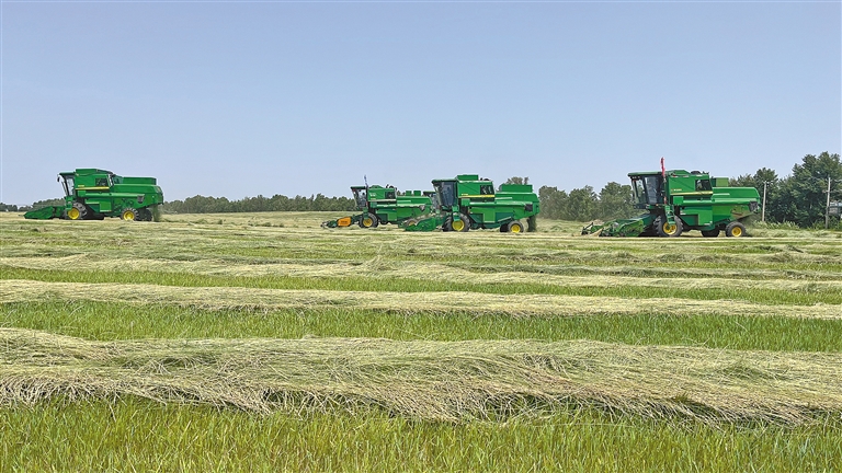 盛夏,地处科尔沁沙地腹地的通辽市开鲁县小街基镇6万余亩羊草迎来首茬收获季。无际的绿草,将成为牛羊的营养大餐,其种子经过初加工后也将送到包衣厂,用于全国各地的生态修复和草种繁育。