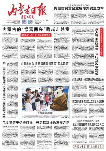 内蒙古日报 一版要闻 01 2025-07-211 2025年07月21日 星期一