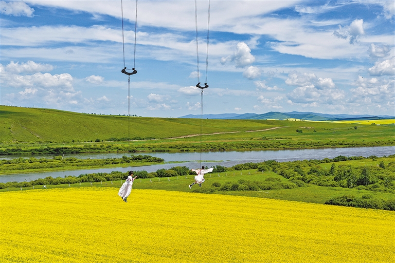 夏风轻拂、花儿摇曳。眼下,呼伦贝尔市额尔古纳市奥洛契庄园的油菜花迎来最佳观赏期,金色花海铺展开一幅鲜亮、灵动的田园画卷,令游客们陶醉其中流连忘返。