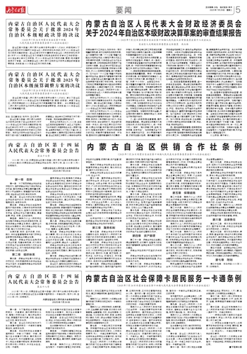 内蒙古自治区人民代表大会 常务委员会关于批准2024年 自治区本级财政决算的决议