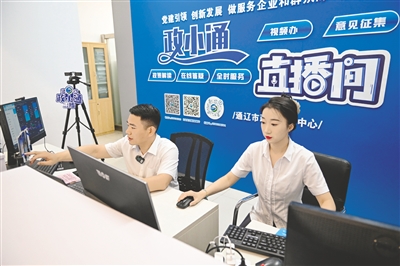 7月30日,工作人员通过直播为群众提供在线咨询服务。为提升政务服务效能,通辽市政务服务中心开通“政小通”全时直播直办服务,为群众提供在线咨询解答、政策解读、帮办代办等服务,实现政务服务“零距离”。