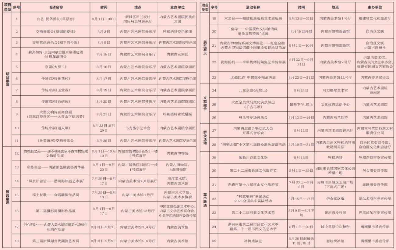 2025年8月北疆文化活动季项目一览表
