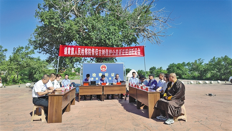 镶黄旗是纯牧业旗县,古树名木较少,辖区内在册古树34棵,古树群2处,树龄均在100年以上。为凝聚古树保护合力,近日,镶黄旗人民检察院在该旗古树集中地点召开了督促古树保护公益诉讼现场听证会,专题研究如何保护出现树干中空、根系外露、受病虫危害、无保护标牌等问题的古树。听证会上,该旗人大代表、旗政协委员、旗人民监督员等,围绕如何完善古树保护机制、落实养护责任、加强宣传教育等内容展开讨论,并提出意见和建议。会后,该院向相关行政机关送达检察建议书,督促其加大对古树名木的巡查保护和宣传工作力度,提升古树名木养护管理水平,增强公众对古树名木的保护意识。