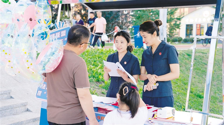 近日,呼伦贝尔市中级人民法院组织干警走进海拉尔伊敏河畔夜市,开展普法宣传工作,通过“答法治题 掷幸福圈”互动游戏的方式,进一步激发群众学法热情,营造了浓厚的法治氛围。刘悦 摄