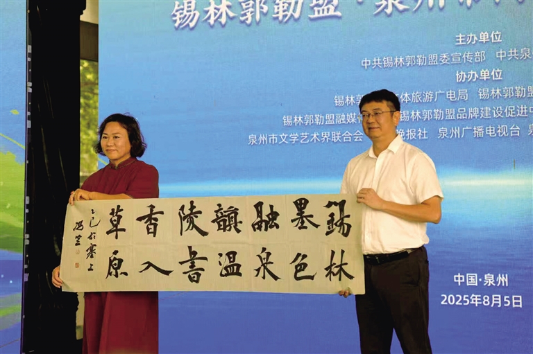 锡林河的潺潺之声与泉州湾的阵阵浪涛,在这个八月达成了奇妙的共鸣;大草原的晨露与泉州城的“半城烟火”,在新时代的阳光下相映生辉。这场跨越三千里的八月之约,早已突破了地理的界限,它是锡林郭勒盟向泉州市递出的圣洁哈达,饱含着北疆儿女的真诚。当大海的涛声与草原的长风交融,当北疆文化与闽南文化共鸣,两地正以文化为笔,共同描绘着中华民族文化繁荣发展的时代新卷,让古丝路的精神在新时代焕发出更加夺目的光彩。