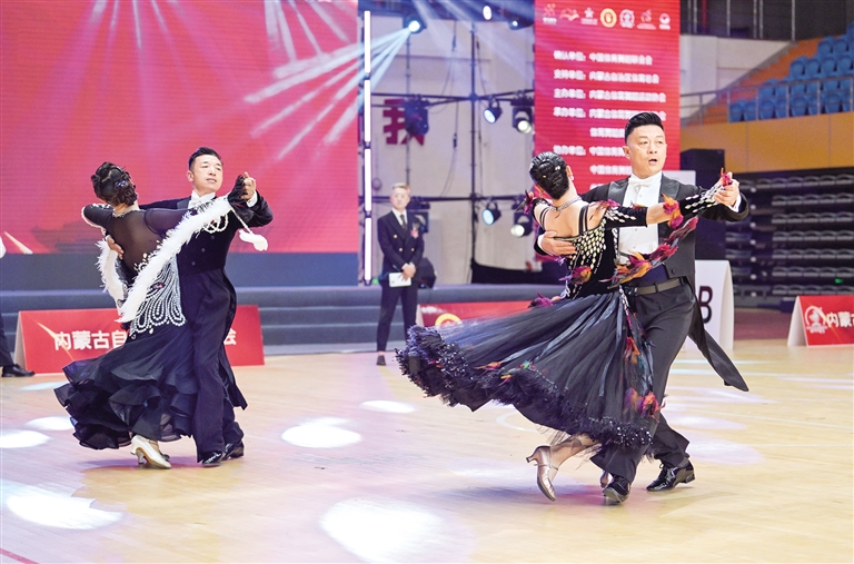 8月7日,参赛选手正在进行比赛。当日,由内蒙古体育舞蹈运动协会主办的2025年“舞林大会”全国邀请赛暨“热舞草原”2025第十届中国·内蒙古体育舞蹈公开赛在呼和浩特开赛,本次比赛共设256个组别,来自北京、河北、辽宁、山西、宁夏、内蒙古等地的25个体育舞蹈代表队500余人参加比赛。本报记者 孟和朝鲁 摄