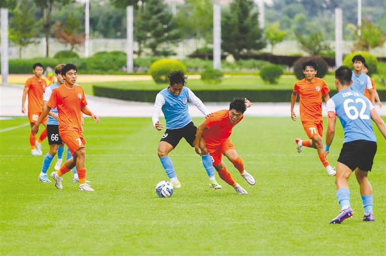 8月10日,2025中国足球青少年精英联赛U21组预赛第三阶段比赛在国家北方足球训练基地拉开战幕。来自青岛西海岸、上海申花、大连英博、长春亚泰、河南俱乐部、深圳新鹏城、青岛海牛、兰州陇原竞技的8支职业俱乐部梯队展开激烈角逐。这是U21足球联赛第三次在国家北方足球训练基地举办。本报记者 孟和朝鲁 摄