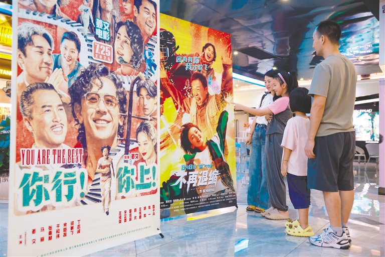 8月10日晚,观众在云南省红河哈尼族彝族自治州开远市的一家电影院内观看暑期档电影宣传海报。据网络平台数据,截至8月10日16时32分,2025年暑期档(6月—8月)电影总票房(含预售)突破85亿。新华社发