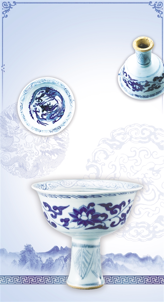 该馆宣教部讲解组的武晓珊介绍:“元代在中国陶瓷发展史上起着承前启后的作用,景德镇窑青花瓷器就是在这一时代背景下达到鼎盛。元代,人们崇尚白色与蓝色。白色是吉祥与纯洁的象征,蓝色则代表苍天,这两种颜色反映在工艺美术上,便成为青花瓷器。我们馆这只青花龙纹高足杯,可以说是元代瓷器艺术的典范,它不仅见证了东西方文明的交融,更在釉下青花的笔触间,镌刻了一个时代的精神追求。”