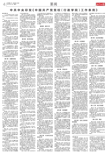 中共中央印发《中国共产党党校(行政学院)工作条例》